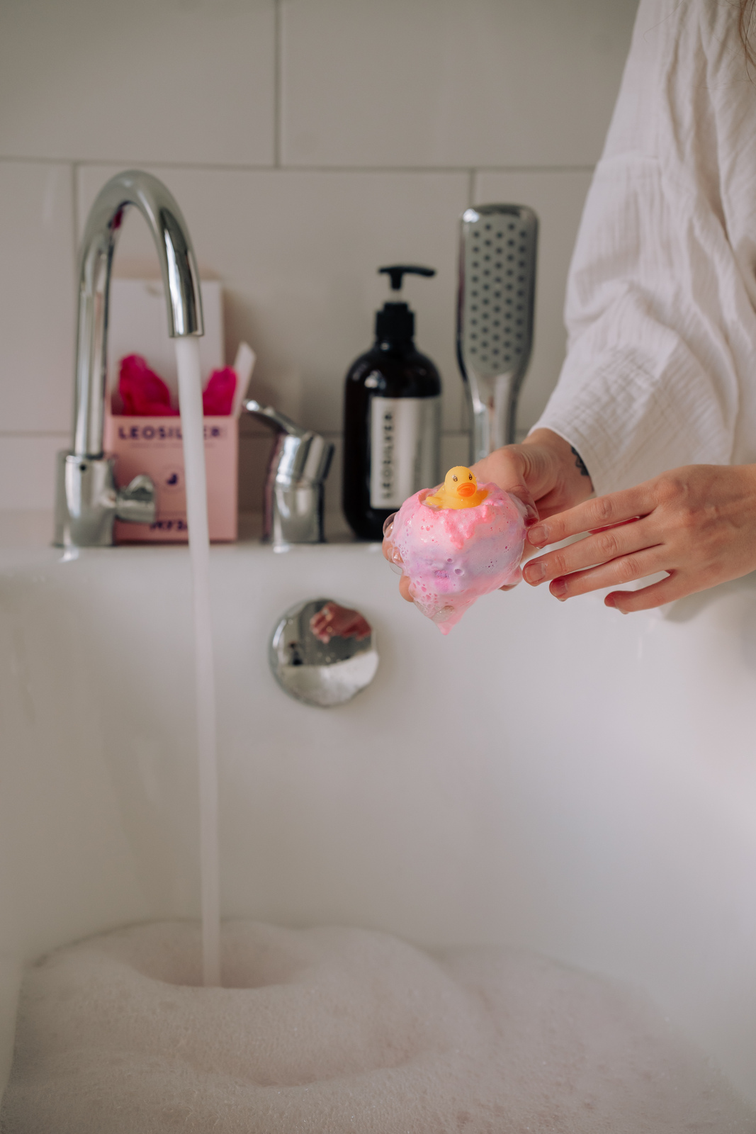Способ применения: поместить в наполненную теплой или горячей водой ванну. Чтобы получить легкую пену в ванне, нужно твердую пену из бомбочки подставить под струю воды. Количество пены зависит от напора воды.